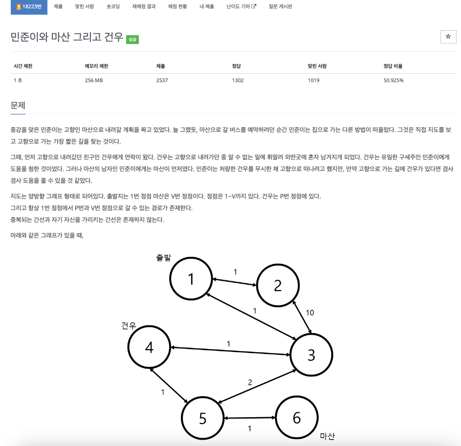 해당 문제는 최단 경로라는 그 말마따나, 최단 경로 문제를 해결하기에 용이한 다이크스트라 알고리즘으로 접근했다.