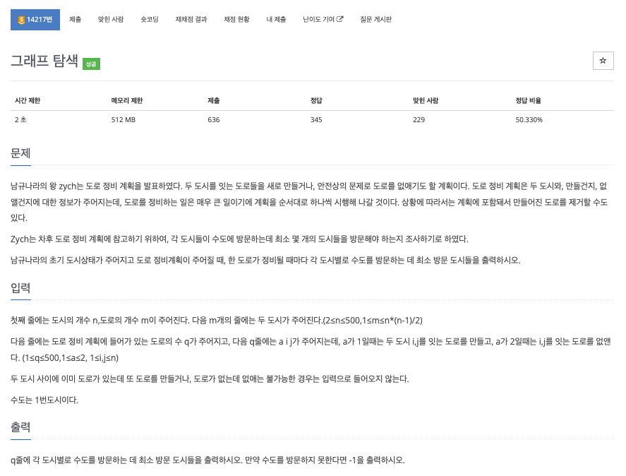 백준14217 - 그래프 탐색 (BFS) node.js 본문