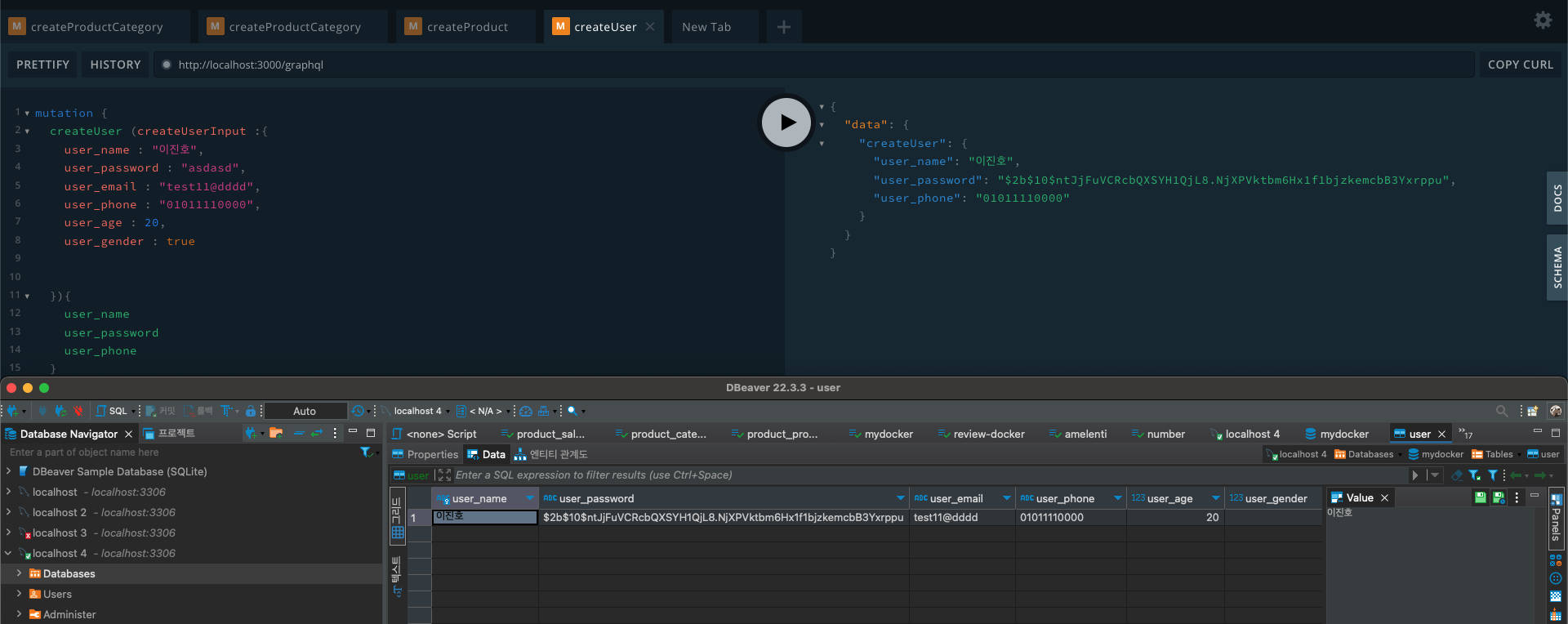 해싱은 bcrypt 라이브러리를 통해 이루어지며